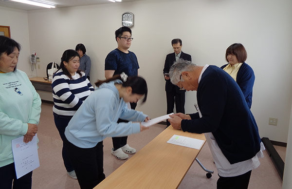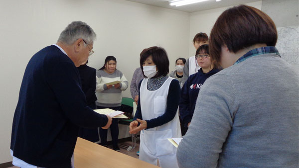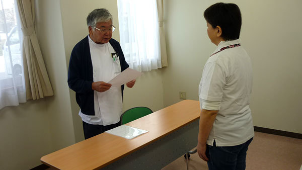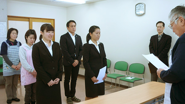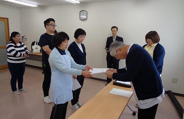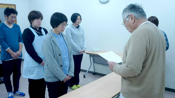 新たに入社されるスタッフ並びに現任スタッフへの辞令交付式がありました。