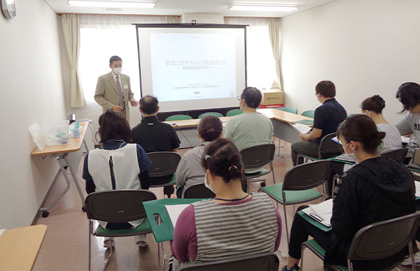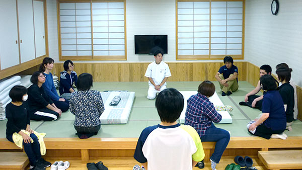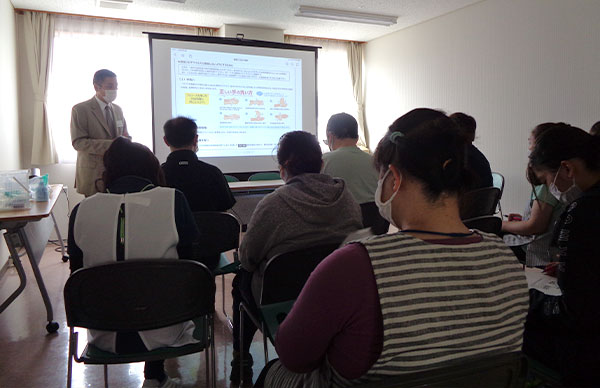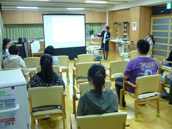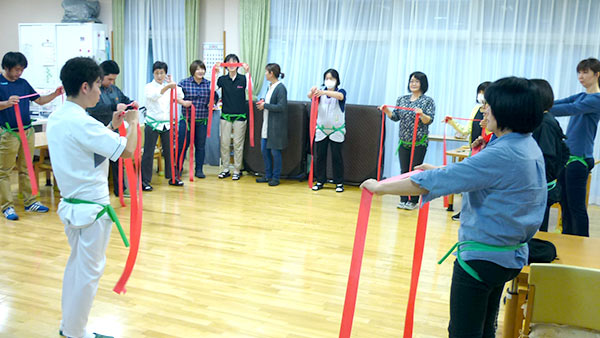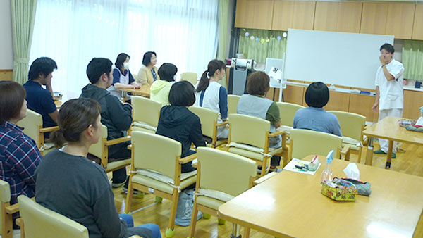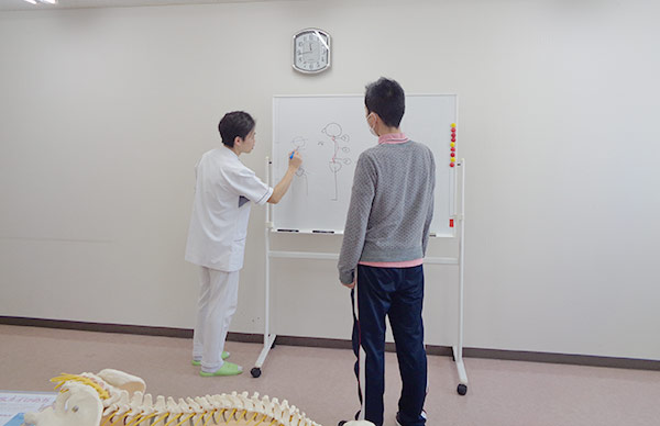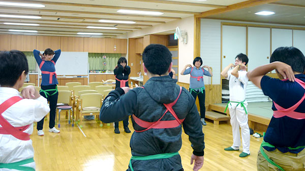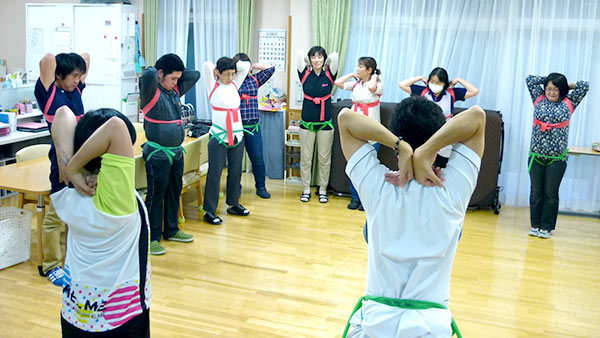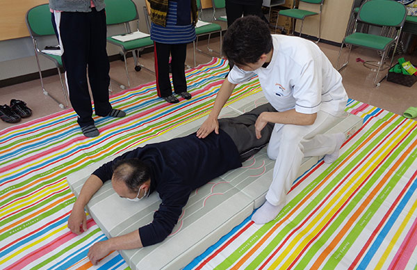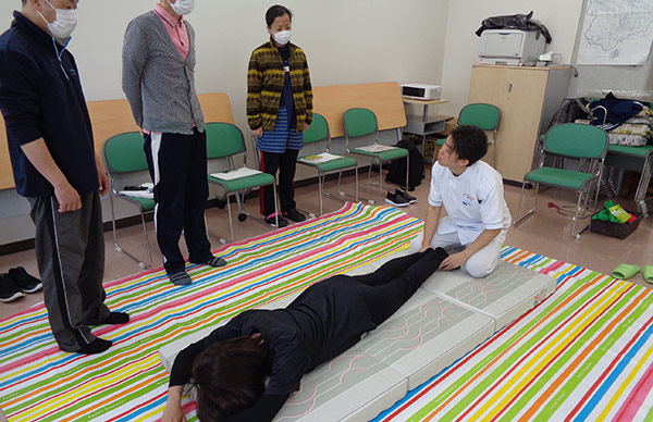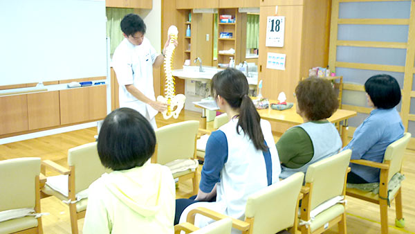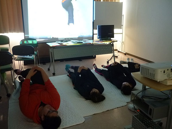 カイロプラクティックの先生を招いて腰痛予防教室を行いました。腰痛になる仕組みや体のメンテナンスについての勉強をし、腰痛や肩の痛み、体の歪みを戻す体操を教えてもらいました。
