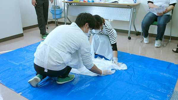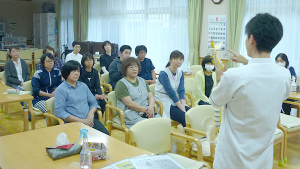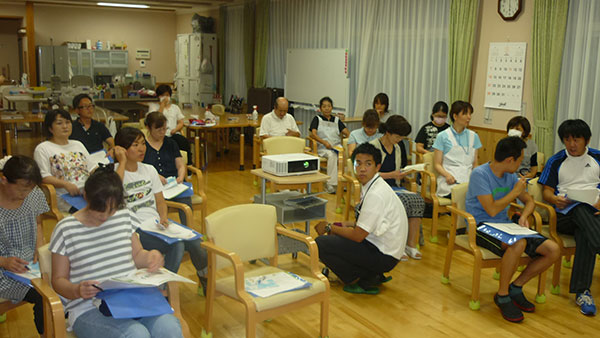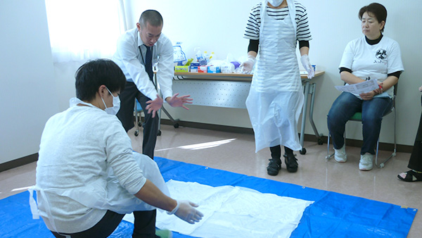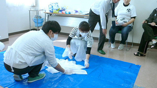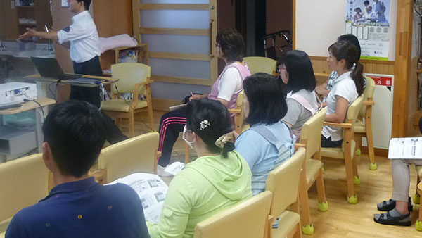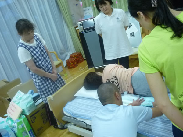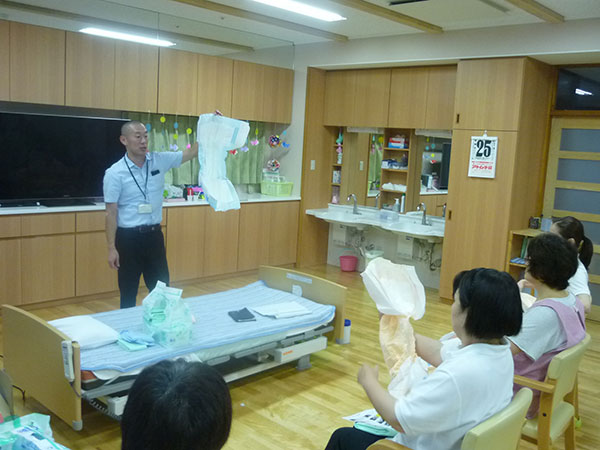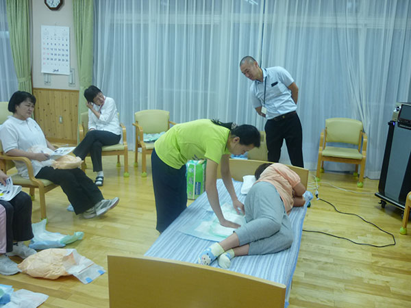排泄ケアについて、講義と実技体験を踏まえての勉強会を行いました。