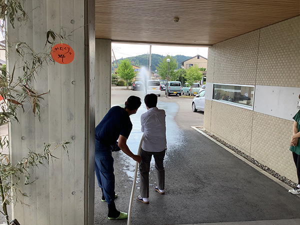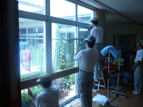 南那須特別支援学校高等部の生徒さん達が来所され、窓ふきの校外学習をしてくれました。