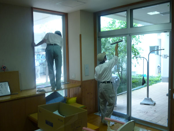一生懸命校外学習をしてくれたおかげで窓がピカピカになりました。