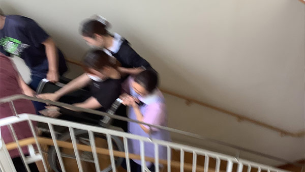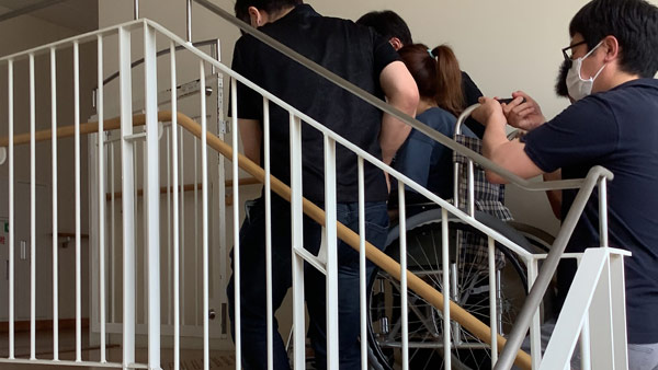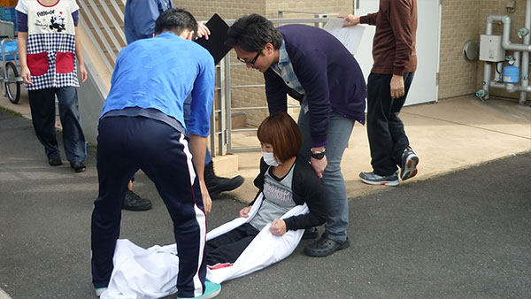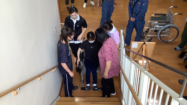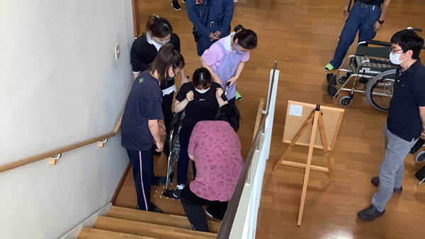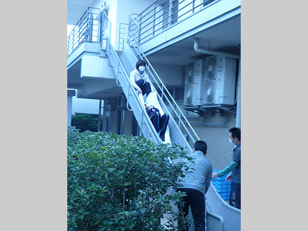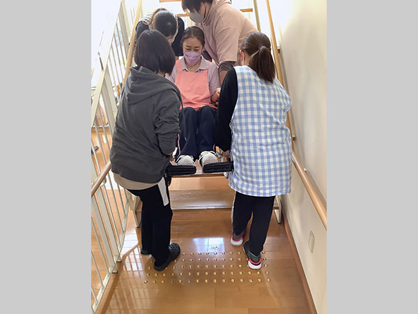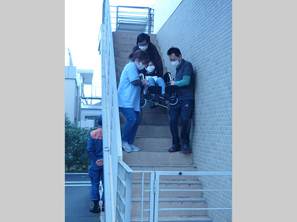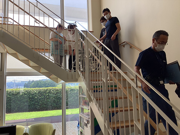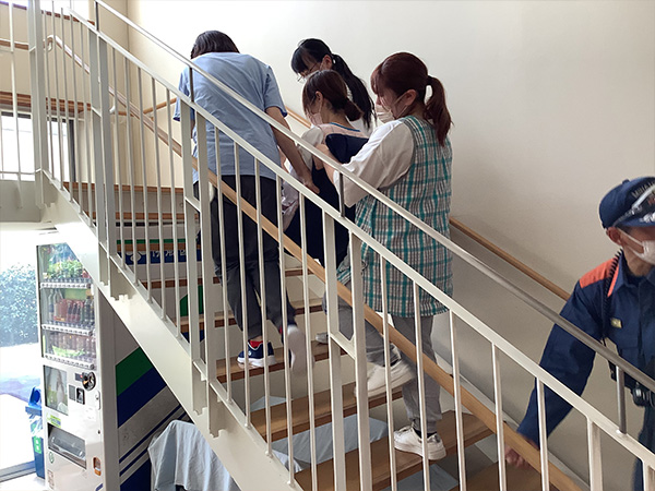 非常災害訓練の一環として、水害等が発生した場合の垂直移動避難の訓練を実施しました。