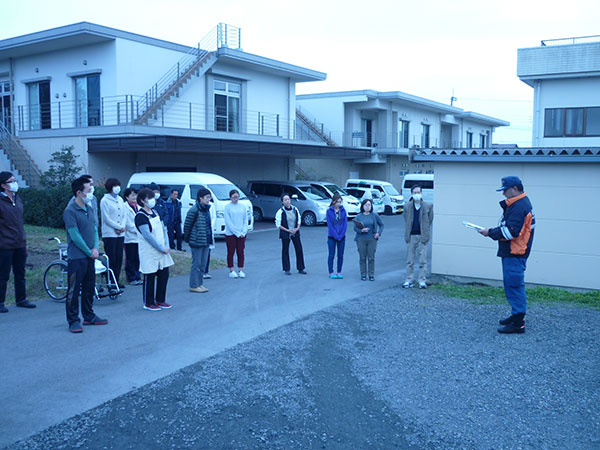 夜間を想定した避難訓練を実施しました。いざという時に備えて真剣に取り組みました。