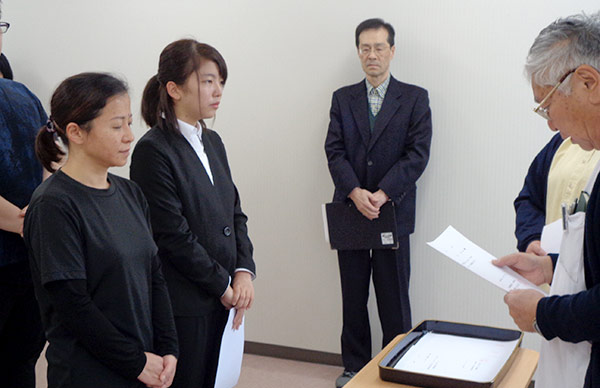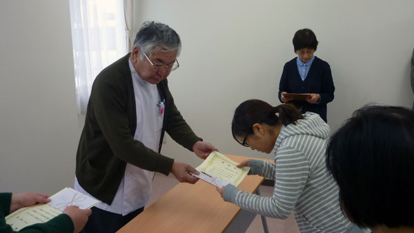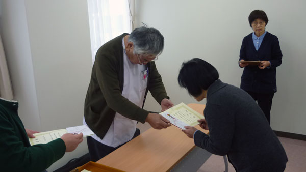 表彰式では、理事長より一人一人に賞状、記念品を賜りました。
