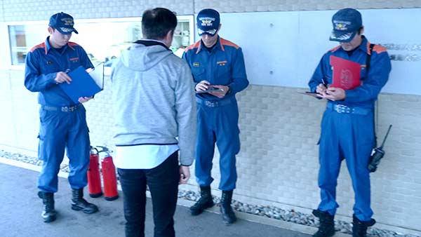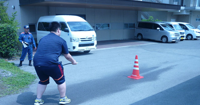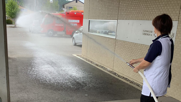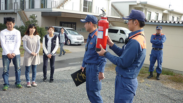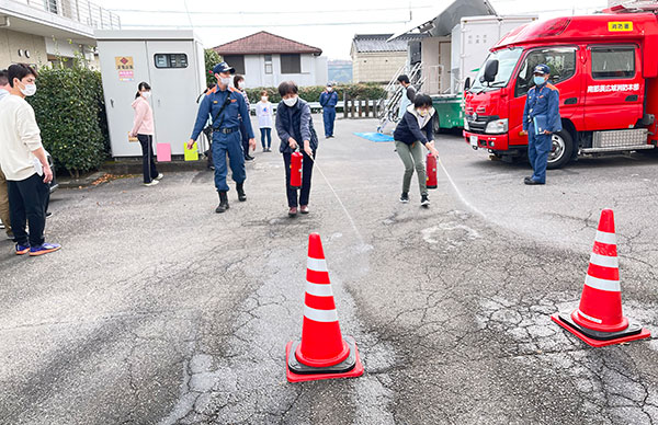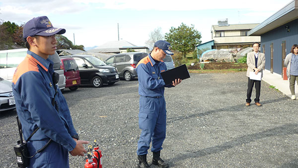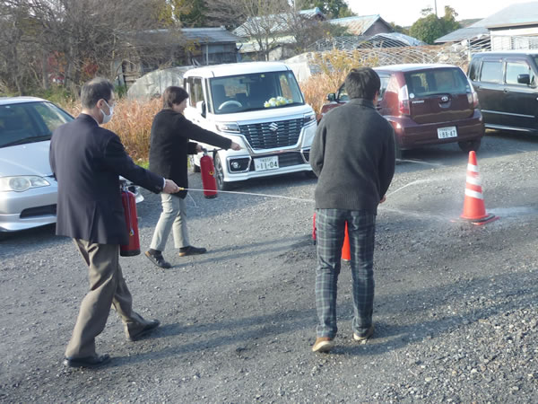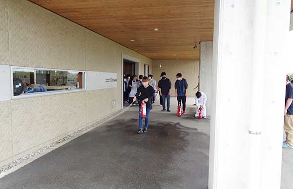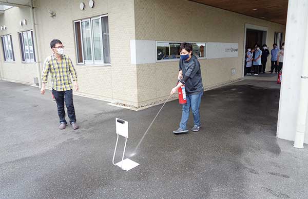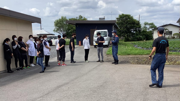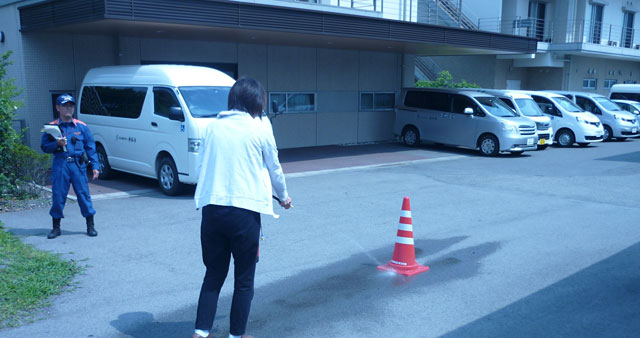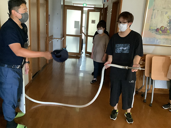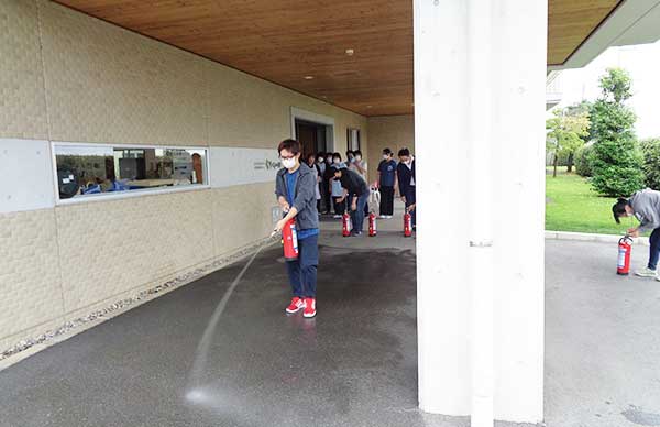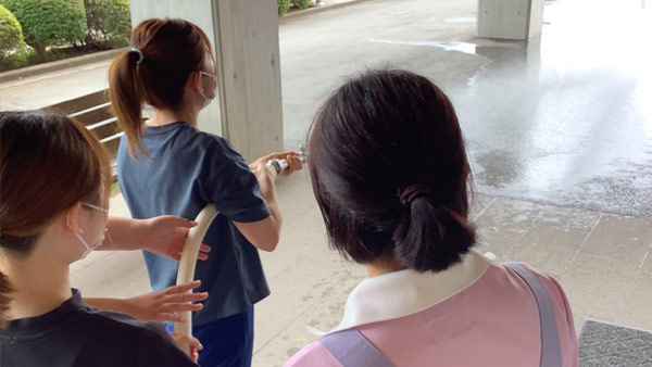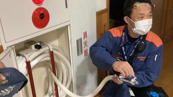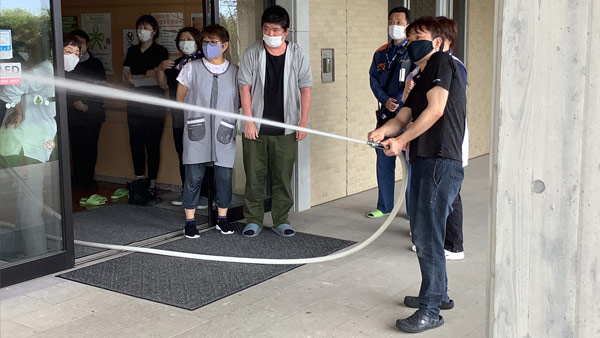 消防訓練を実施致しました。今回は消火用散水栓の使い方を消防署員立ち合いの元、アドバイスを頂きました。