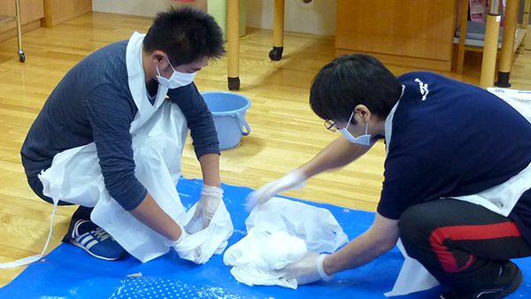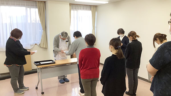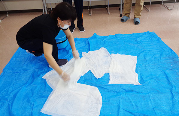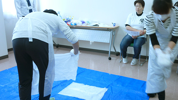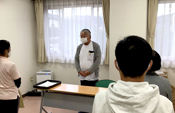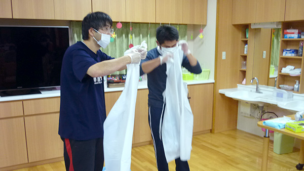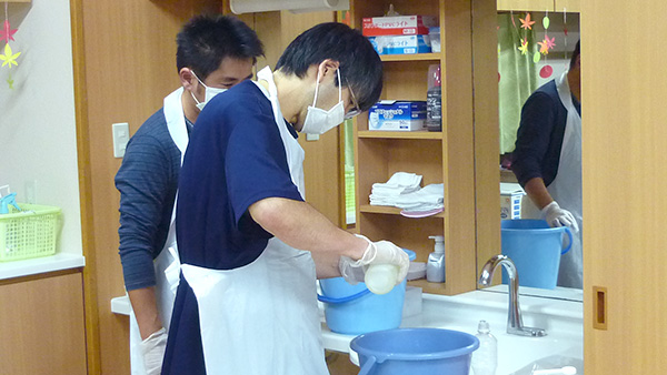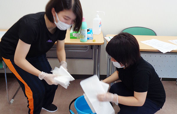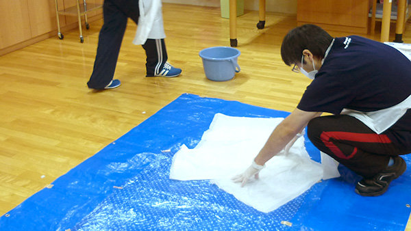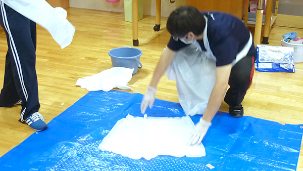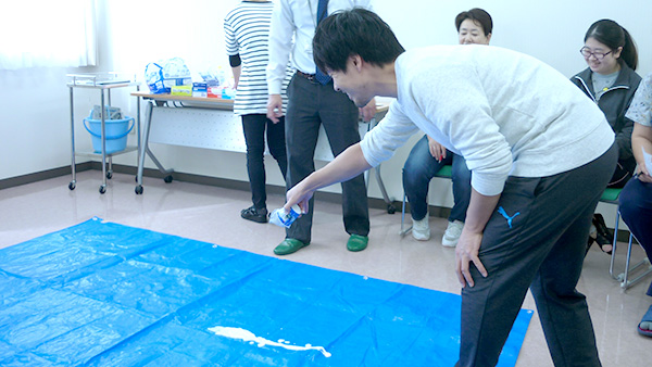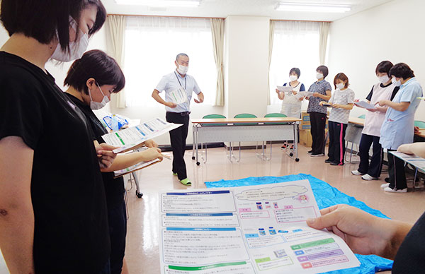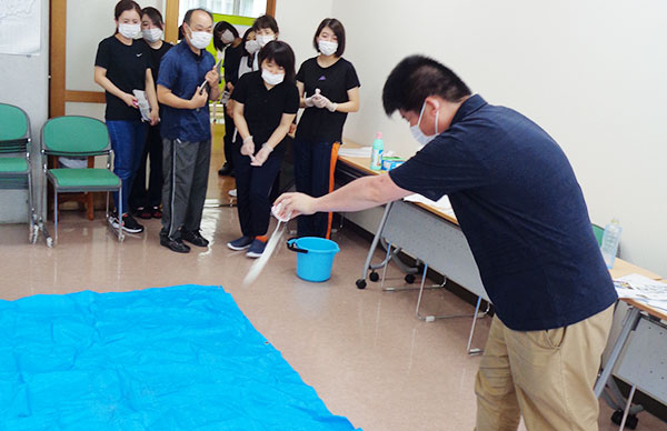 職員一丸となって新型コロナウィルス感染症対策をしているところですが、他の感染症のリスクも考えられるため、吐物処理の研修会を行いました。