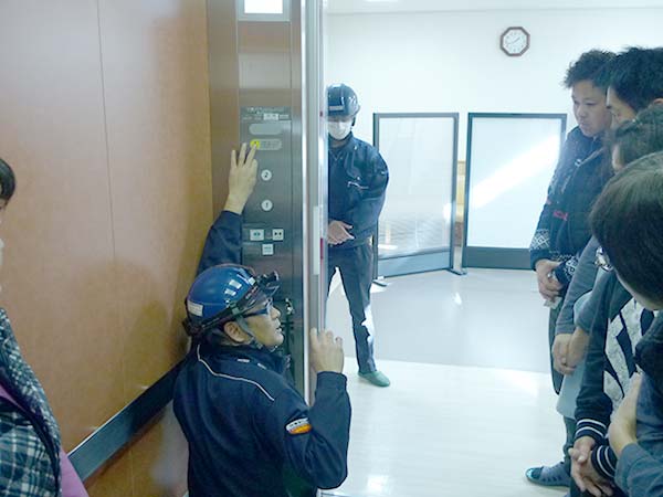 いざという時のために、緊急時のエレベーターの脱出方法や操作方法等の訓練を行いました。