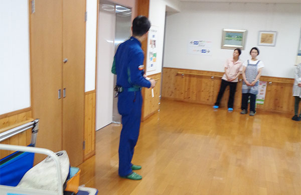 非常災害訓練の一環として、垂直移動訓練を実施いたしました。