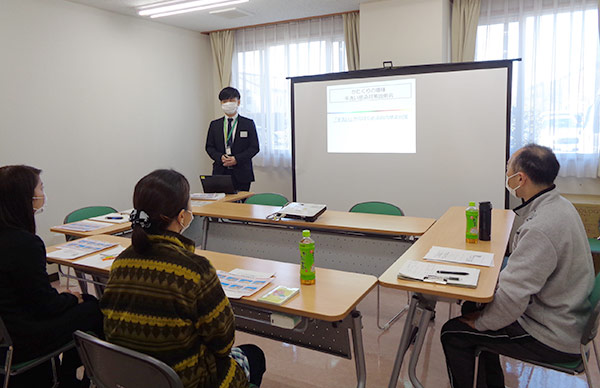 今年は4名の新卒者が入社しました。新人研修では様々な講師・職員から話や実技を学び、みなさん真剣に話を聞いて研修に取り組む姿が見られました。