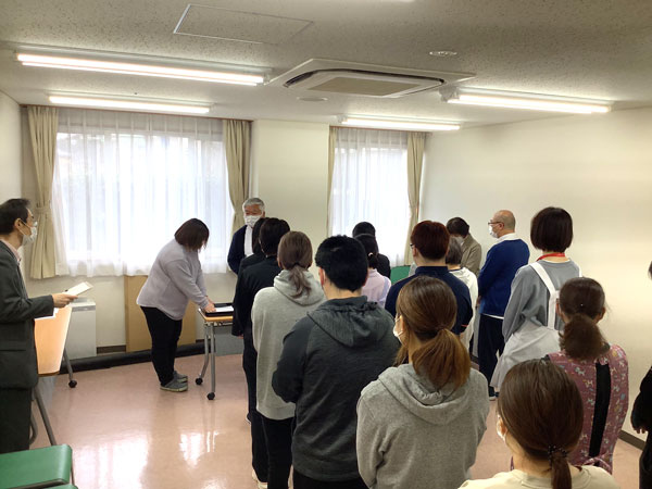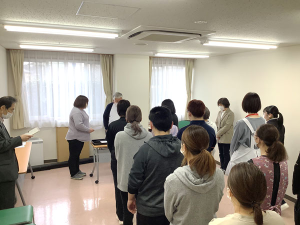 令和2年4月1日に辞令交付式が行われました。理事長より新入社、異動職員へ辞令が渡され、法人としての心構え等のお言葉をいただきました。